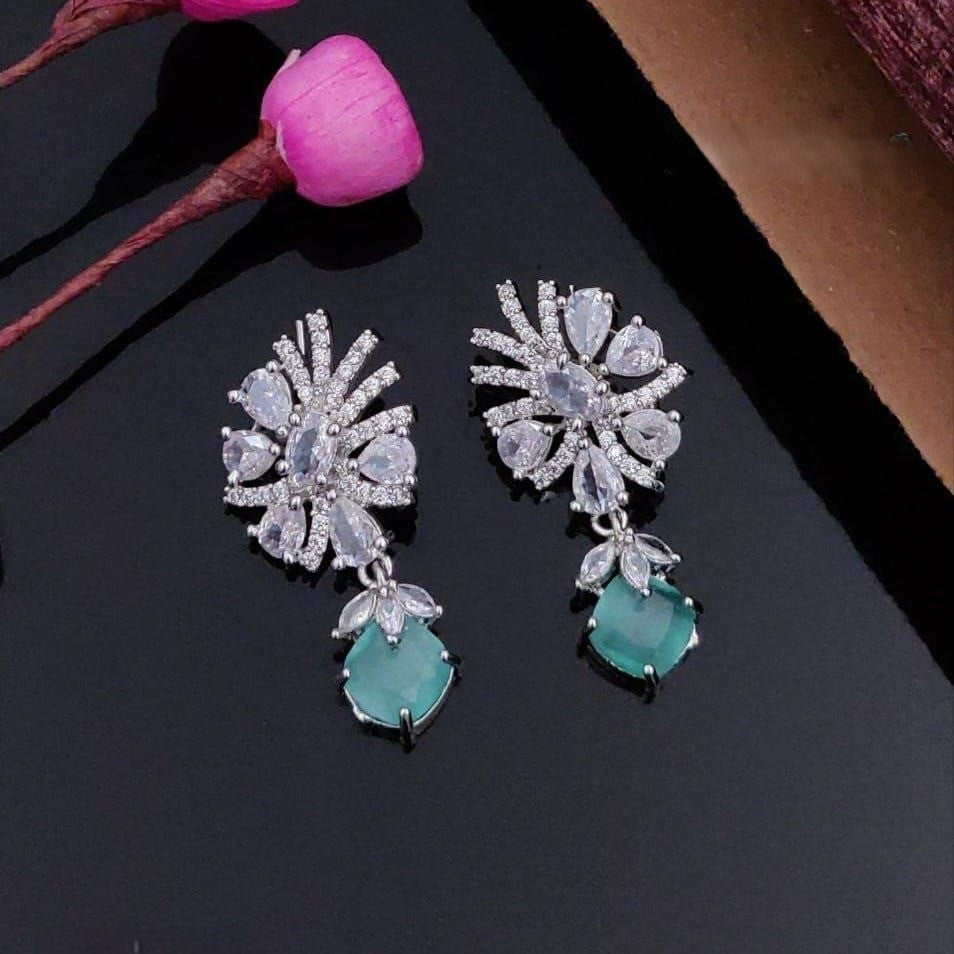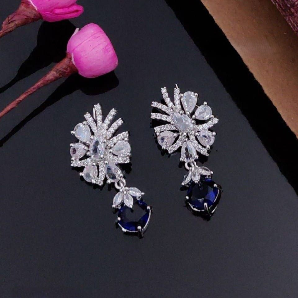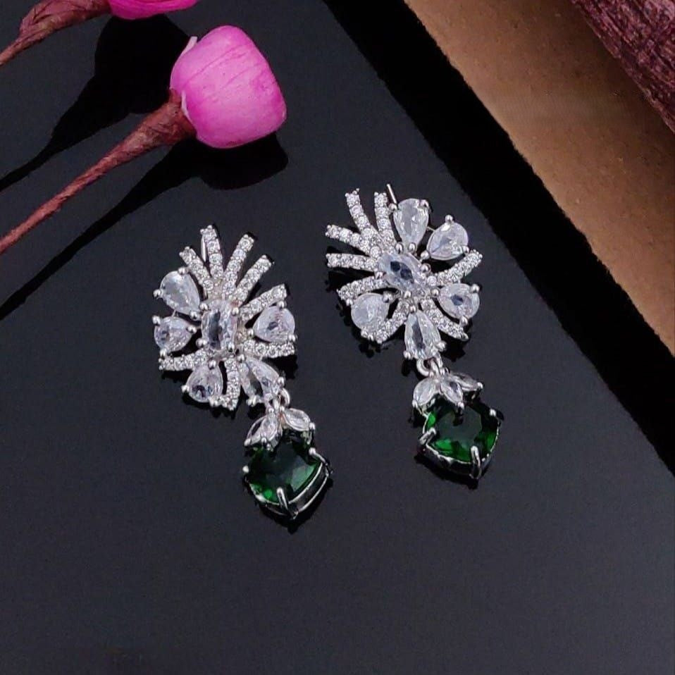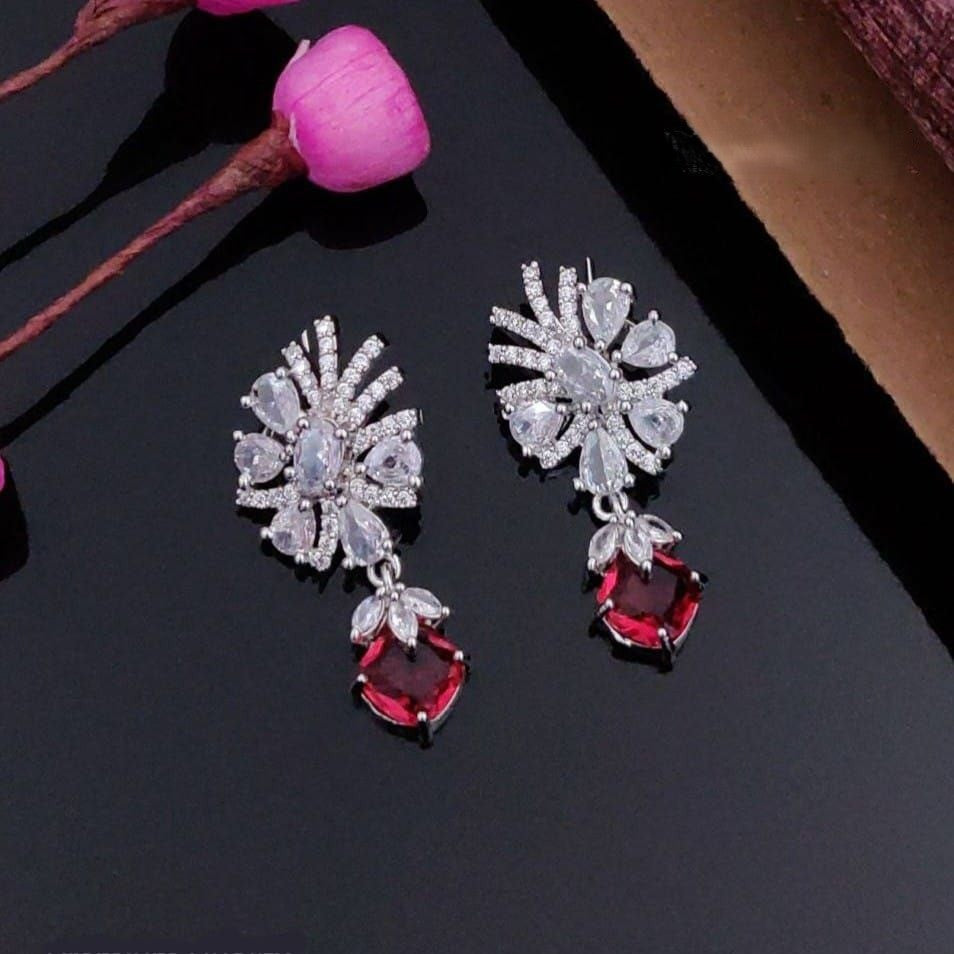 Add a touch of glamour to your look with these stunning AD Fancy Drop Earrings with Stone. Featuring brilliant American diamond (cubic zirconia) stones in an elegant drop design, these earrings are perfect for making a statement.