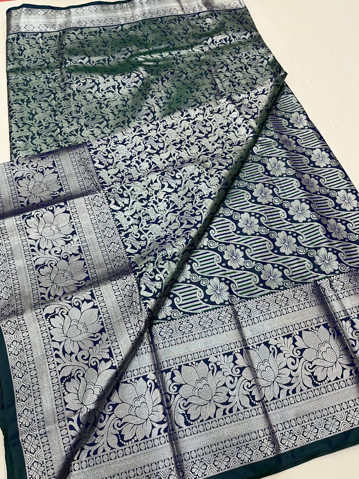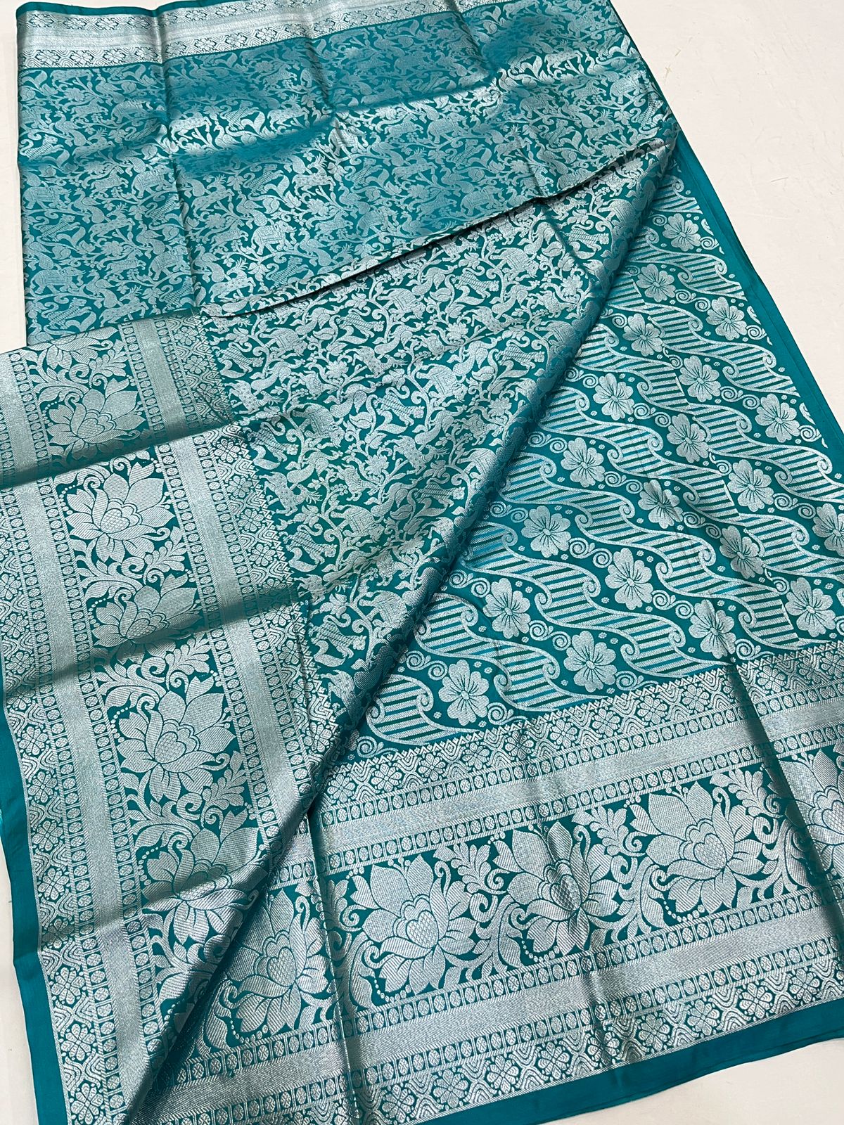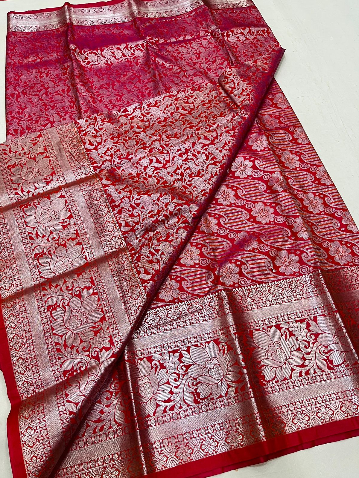 Elevate your bridal look with this exquisite Kanchipuram soft silk saree, where timeless elegance meets accessible luxury. Handcrafted with premium...