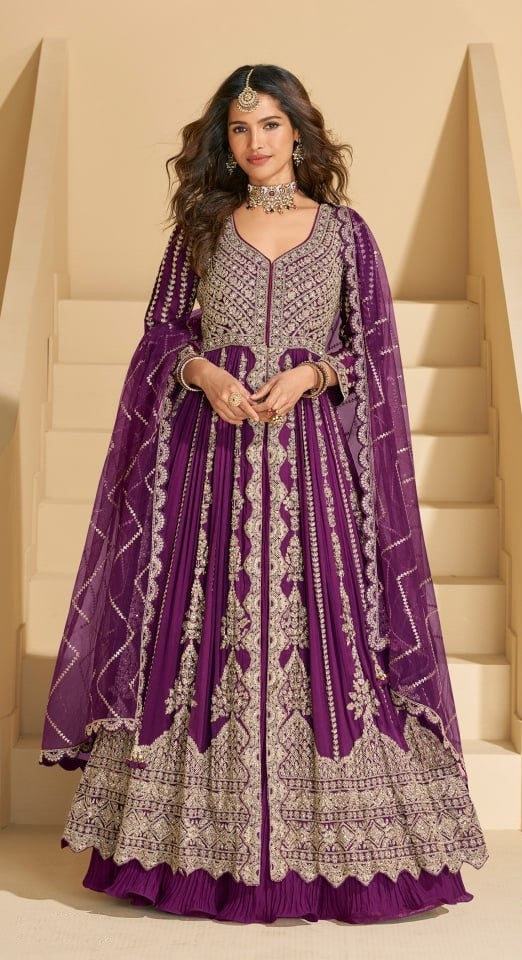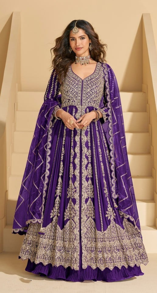The flowing silhouette flatters every body type while the included dupatta adds versatility for layering and styling. Perfect for weddings, festivals, and special celebrations, this piece transforms you into the center of attention. The breathable Chinon material ensures comfort throughout the day, making it ideal for both formal events and festive gatherings. Invest in timeless elegance that honors cultural heritage while keeping you fashion-forward.