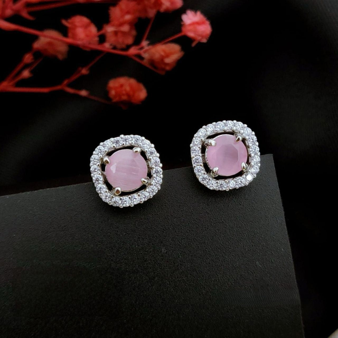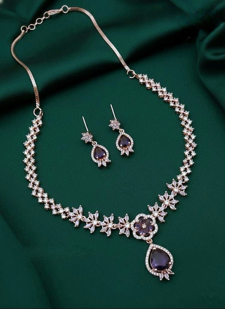 Exquisite AD Stone Necklace Set with Coordinated Drop Earrings and Classic Stud Earrings