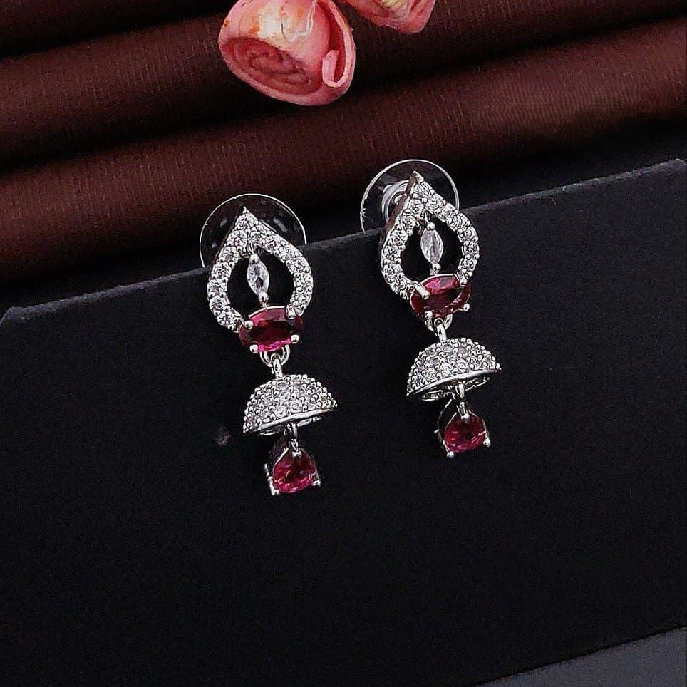 Exquisite AD Stone Necklace Set with Matching Drop Earrings and Statement Jhumka Combo