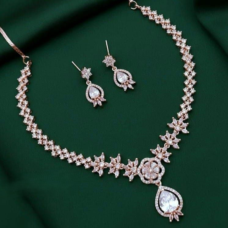 Exquisite AD Stone Necklace Set with Matching Earrings and Designer Drop Earring Combo