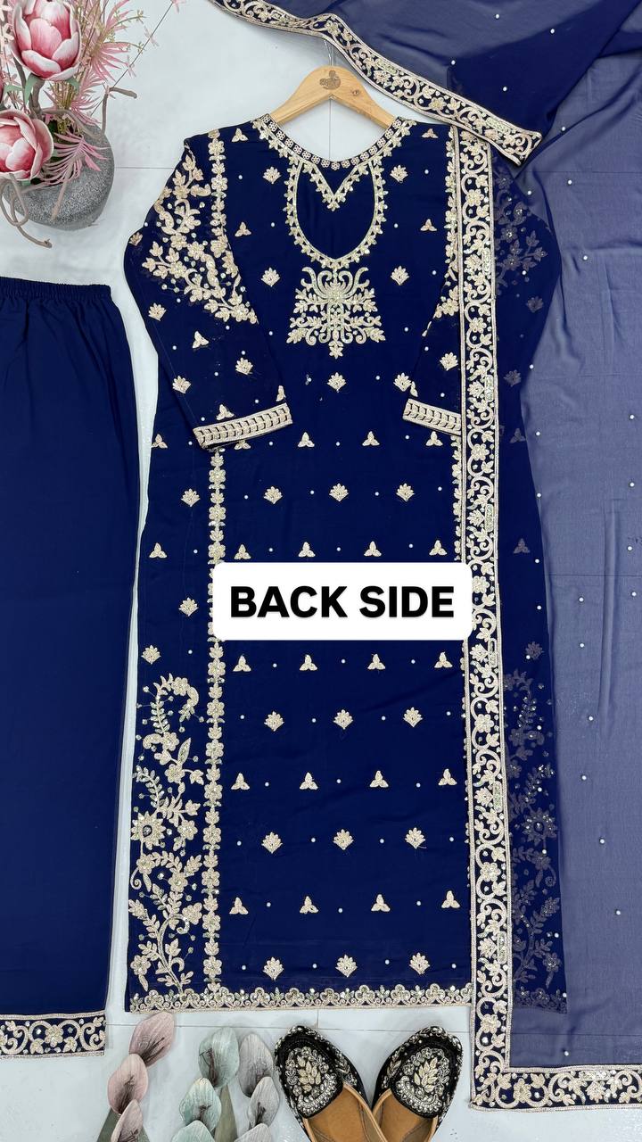 Heavy Faux Georgette Chine Sequence Work Top-Bottom And Dupatta Set