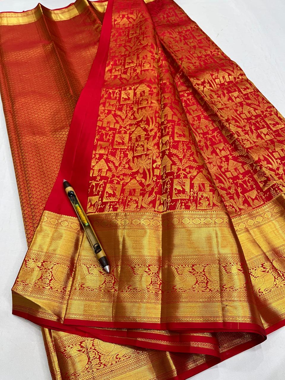 Kanchipuram Handloom Pure Silk Beautiful Full Gold Bridal Saree