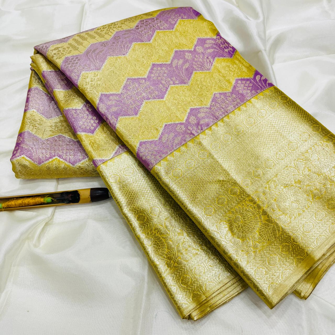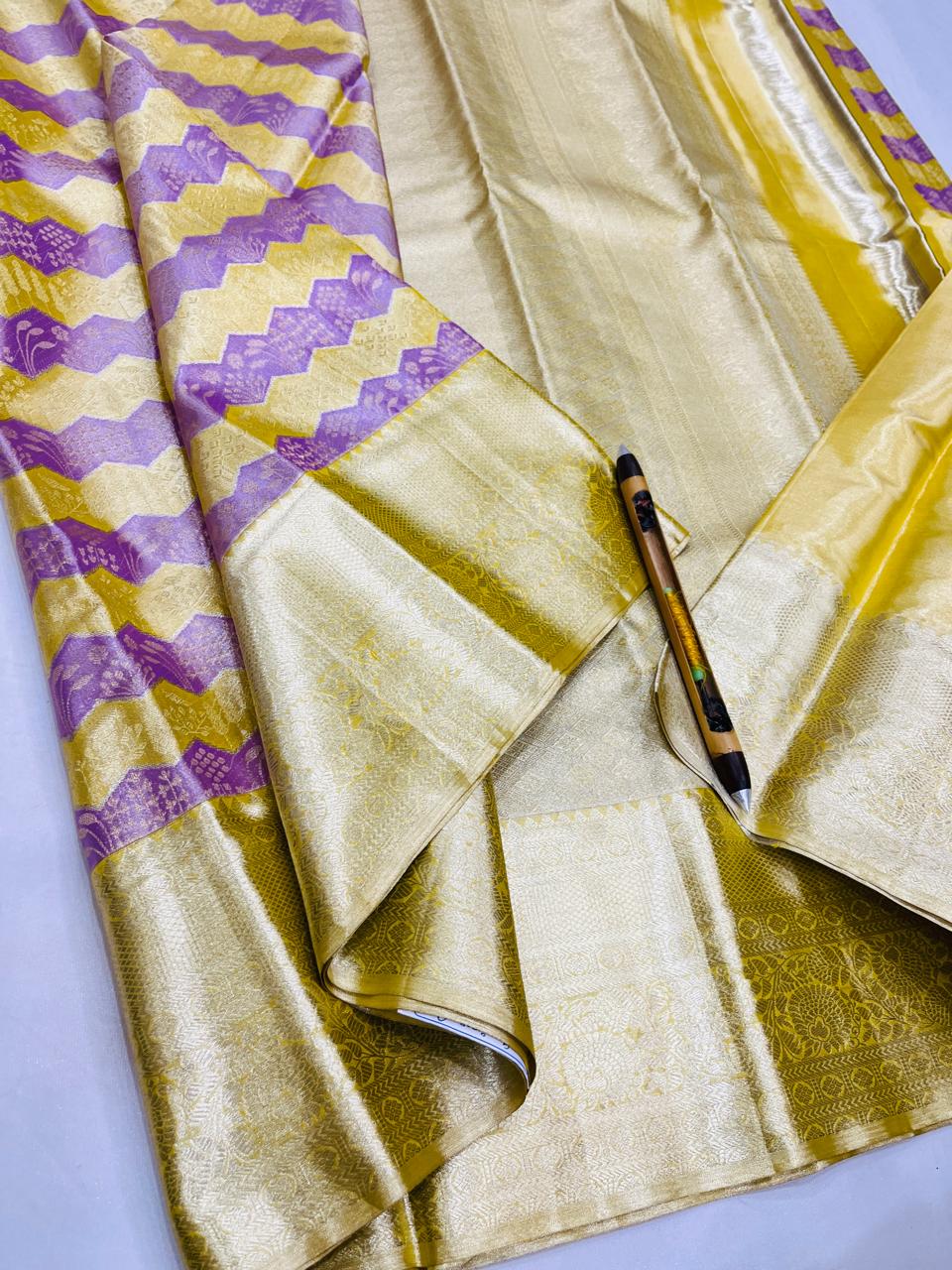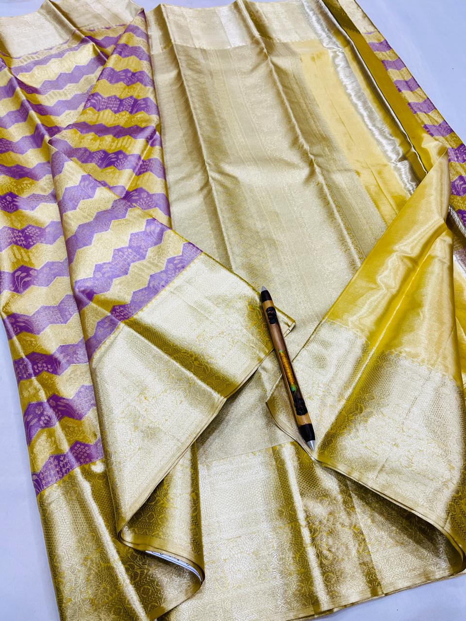 Kanchipuram Handloom Pure Silk Unique Tissue 3 Card Bridal Silk Mark Certified Saree