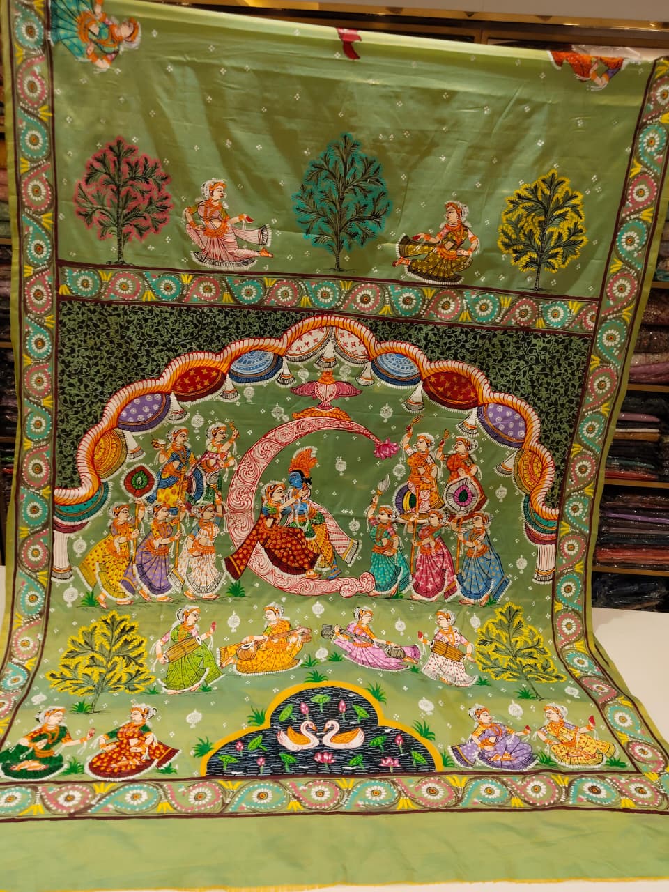 Krishna Rasa Pattachitra Mulberry Silk Saree | Hand-Painted Art