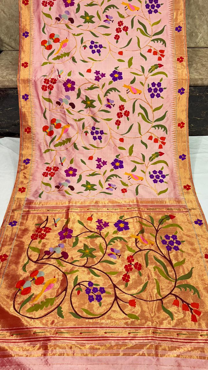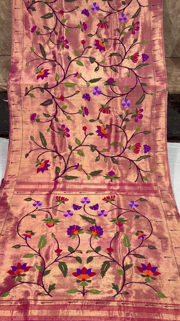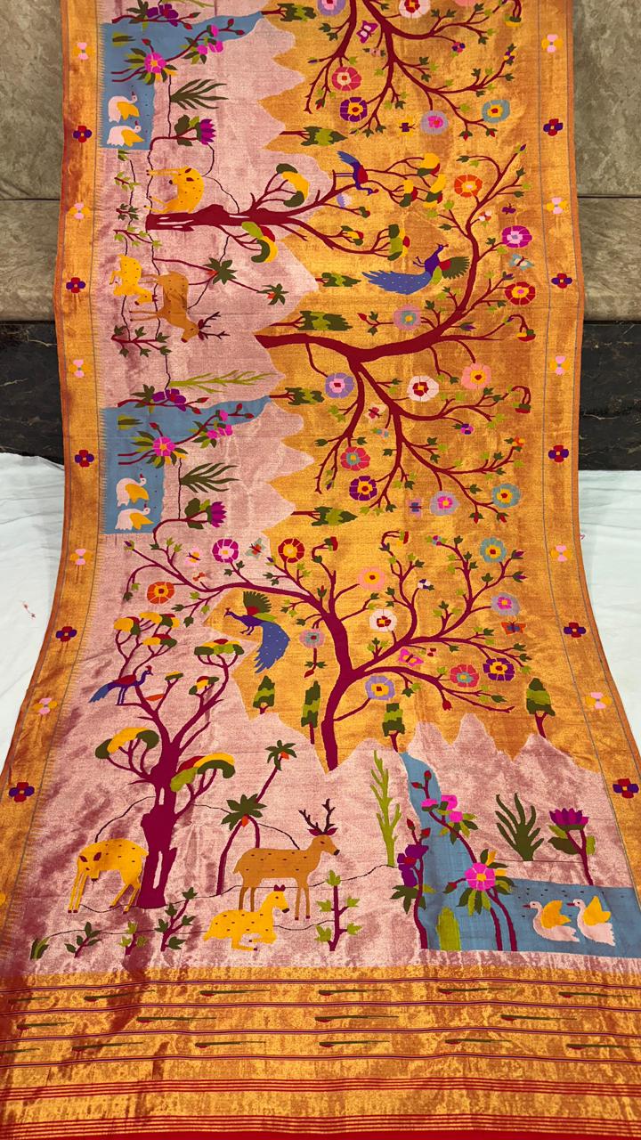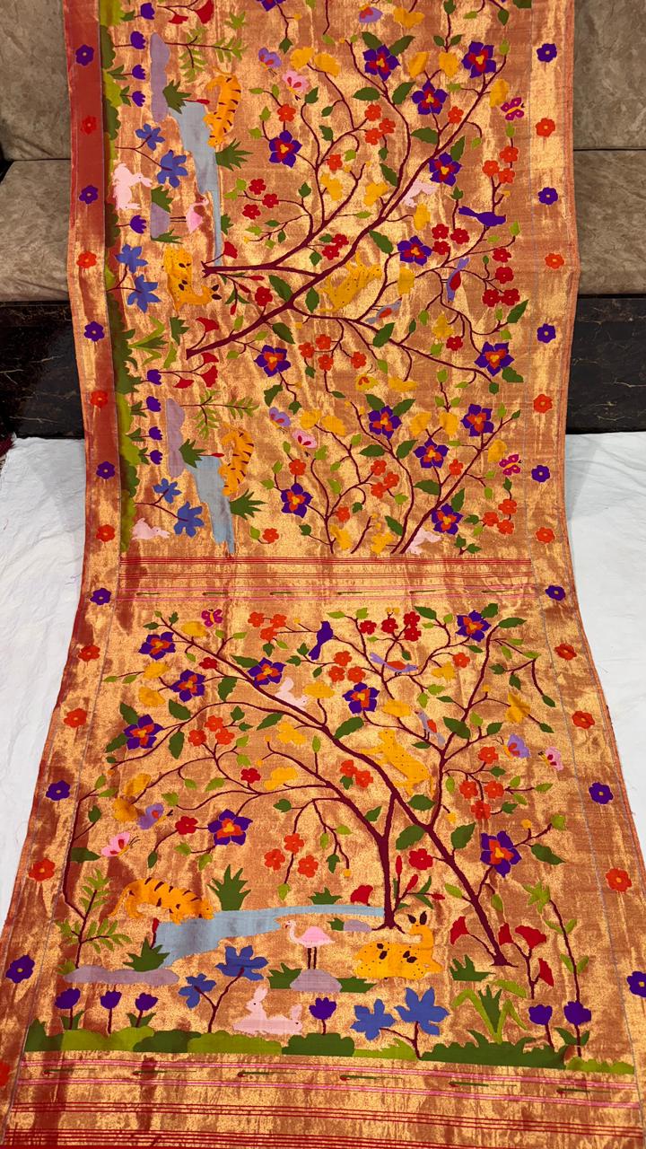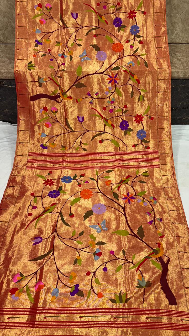 Premium Bridal Pure Silk Brocade Paithani Saree with Golden Zari