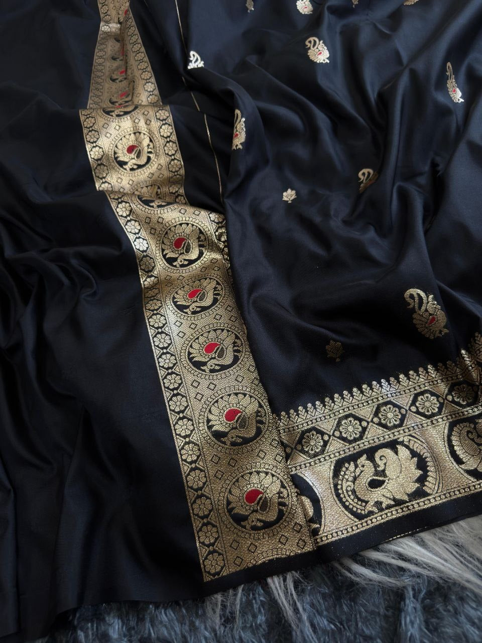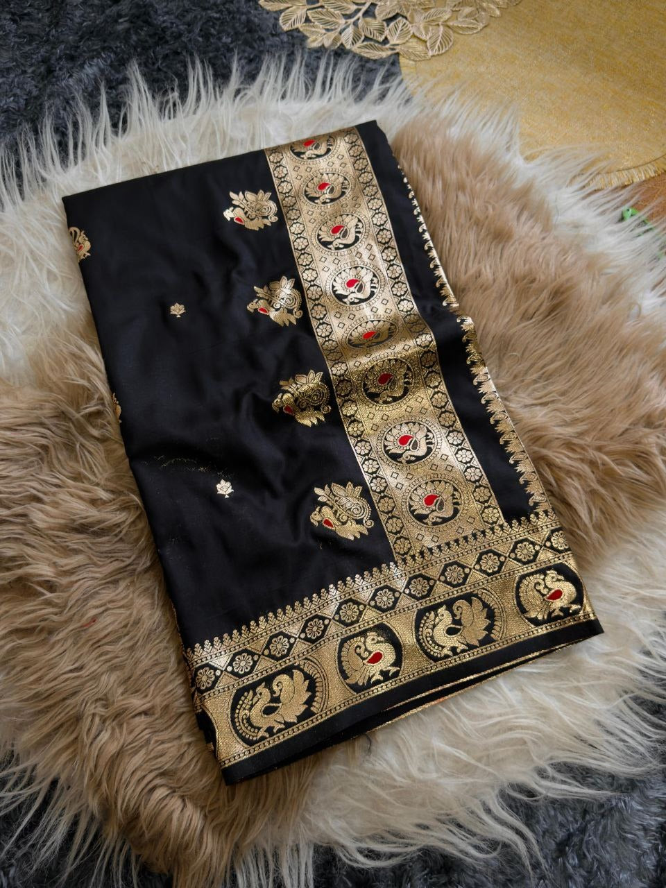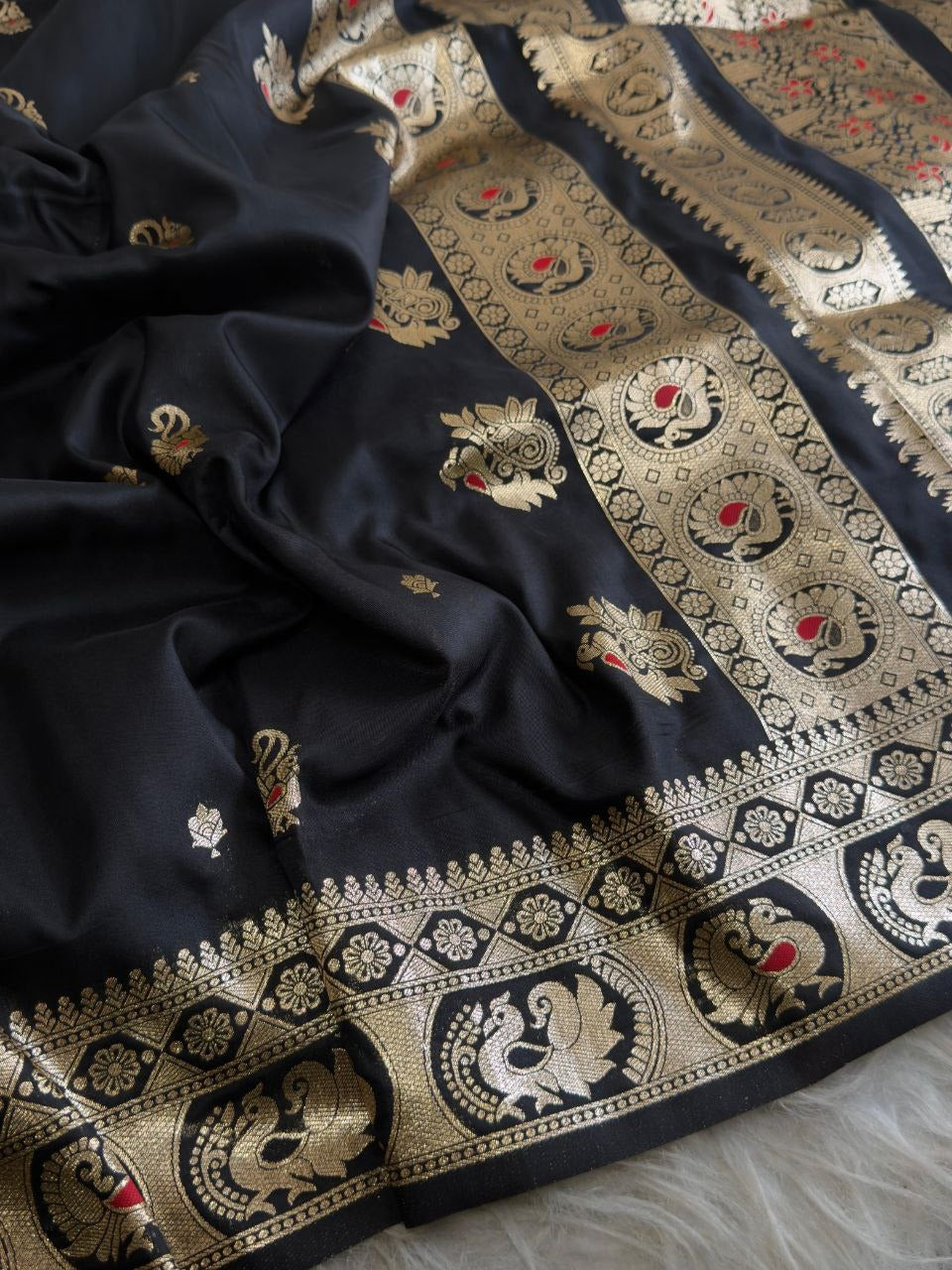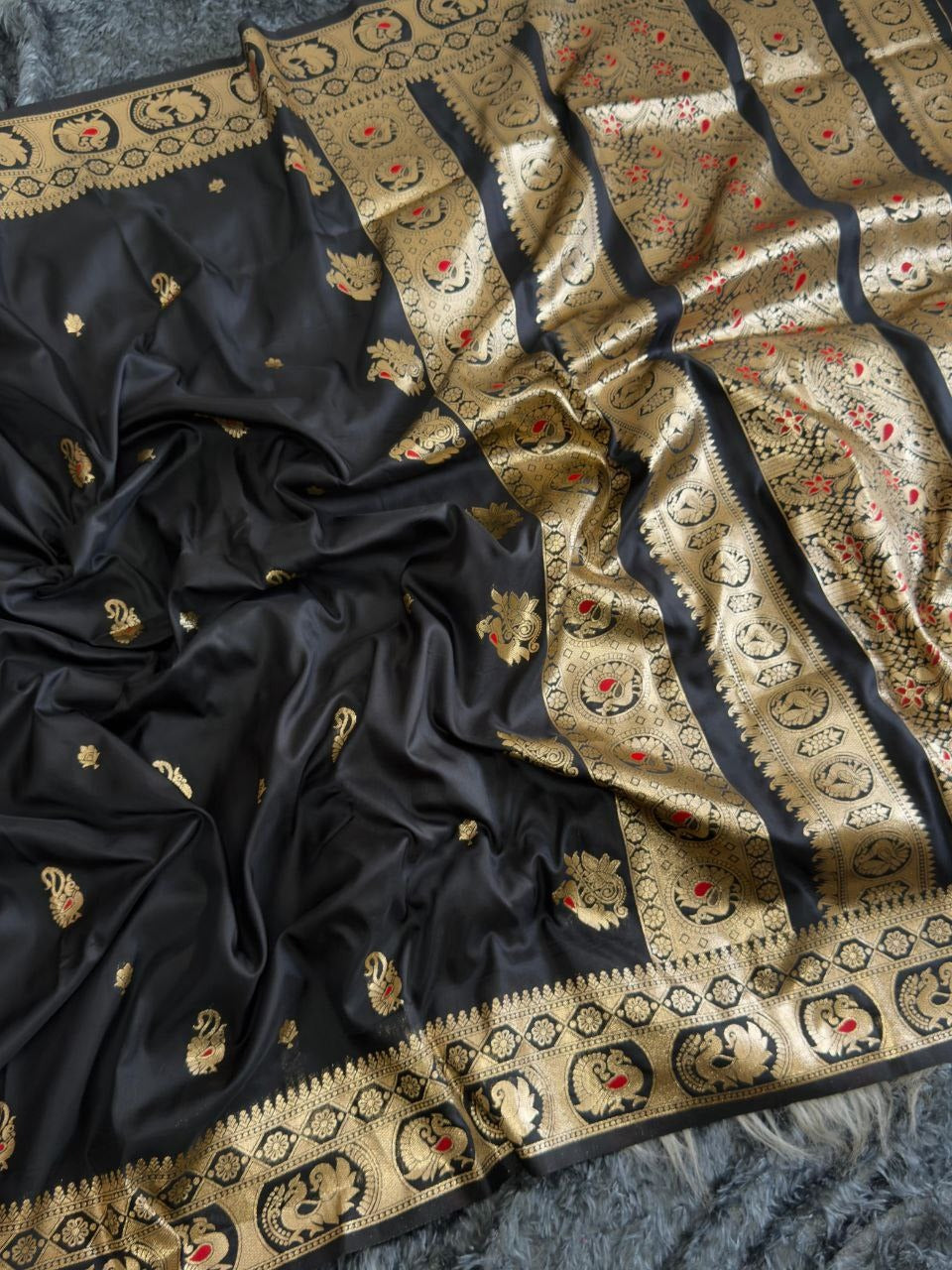 Premium Classic Black Banarasi Bomkai Silk Saree with Rich Zari Weaving