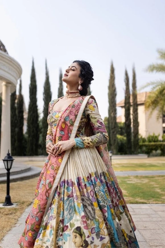 Premium Cream Tussar Silk Lehenga Choli With Kalamkari Print