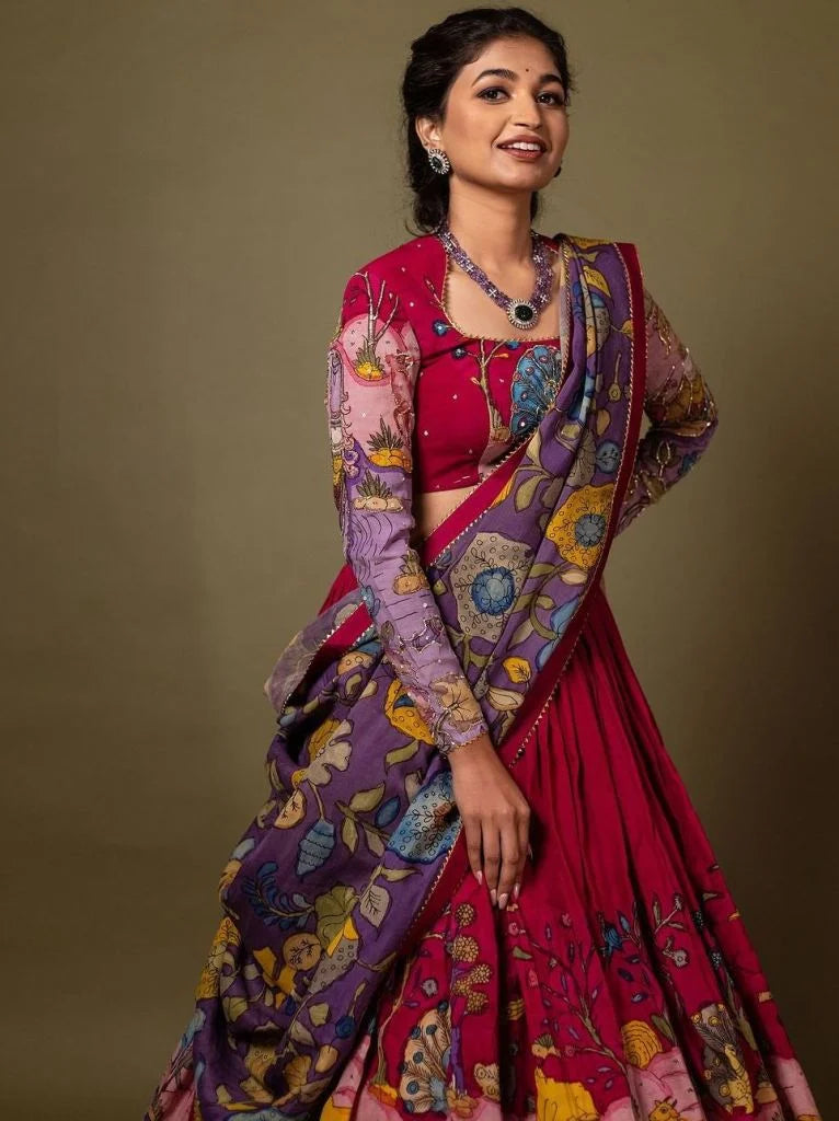 Premium Multicolor Tussar Silk Lehenga Choli With Kalamkari Print