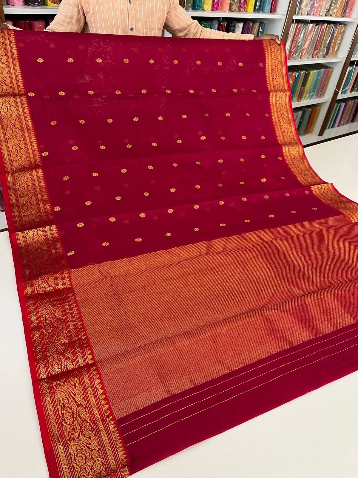 Pure Chanderi Katan Silk Saree with Golden Zari Weave and Nakshi Border