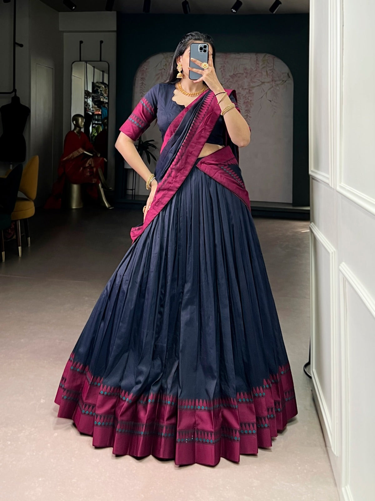 Elegant Pure Chanderi Lehenga Set with Exquisite Thread Work