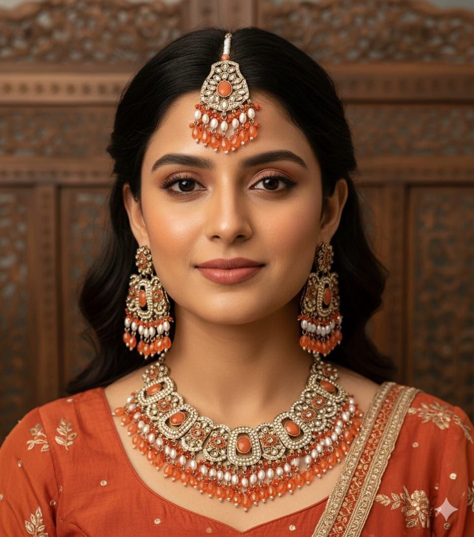 Reverse AD Stone Choker with Big Earrings & Tika | Premium Quality