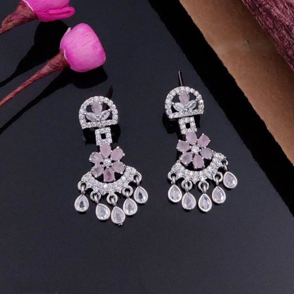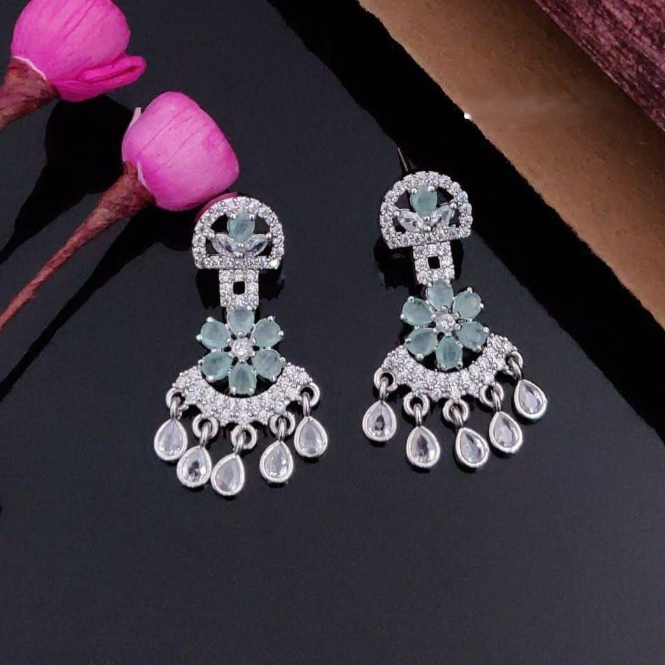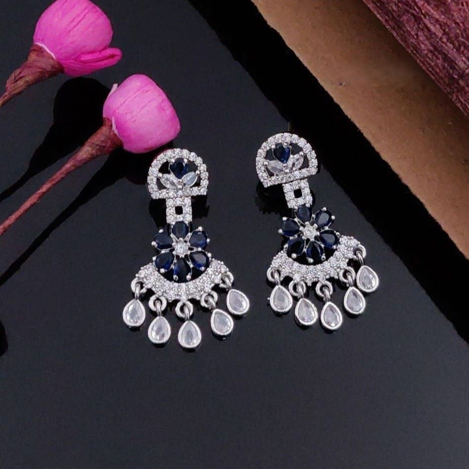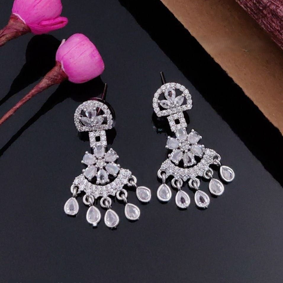 Rhodium-Plated American Diamond Chandbali Drop Earrings
