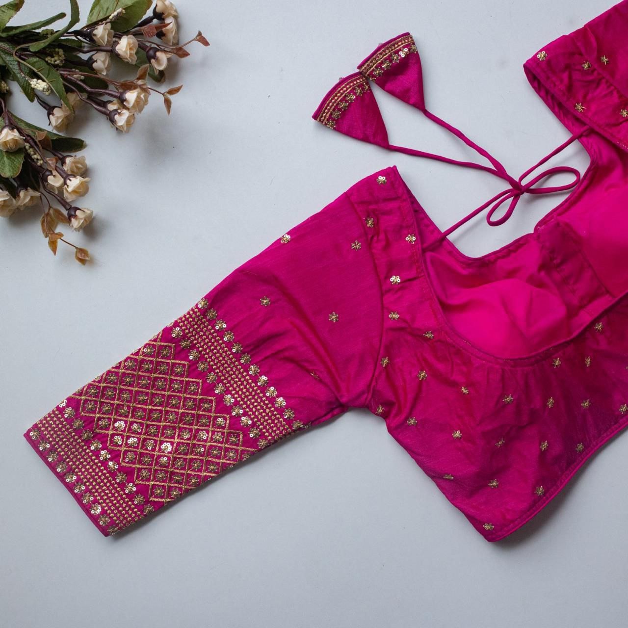 Vichitra Silk Readymade Blouse with Zari Sequin Embroidery | V-Neck